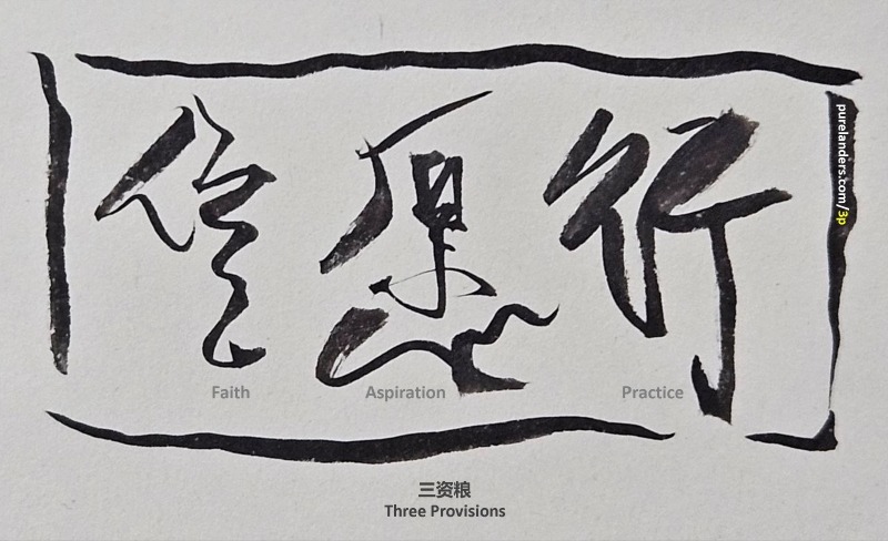 With Faith and Aspiration already complete, recitation of [Amitābha] Buddha’s name [Āmítuófó] is then as the Main Practice, while correction of evil and cultivation of good are all as Supportive Practices.