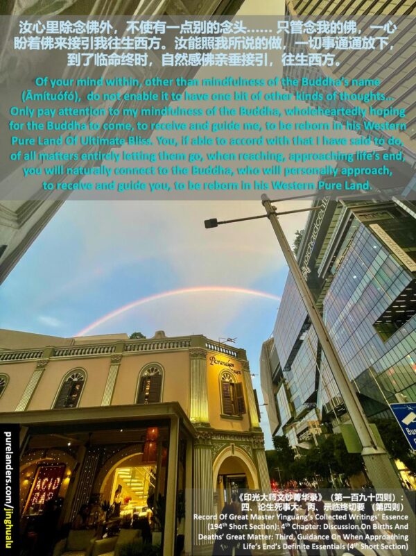 Record [Of] Great Master Yìnguāng’s Collected Writings’ Essence (194th Short Section): 4th [Chapter]: Discussion [On] Births [And] Deaths’ Great Matter: Third, Guidance [On] When Approaching [Life’s] End’s Definite Essentials : (4th Short Section)