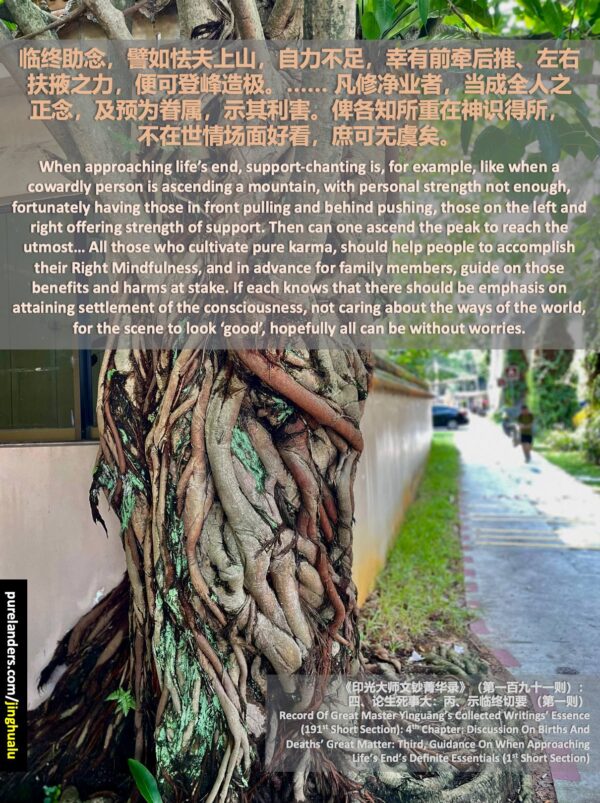 [Note 5: These persons who come to offer support-chanting should have proper understanding of the Three Great Essentials When Approaching Death《临终三大要》: https://purelanders.com/now.]