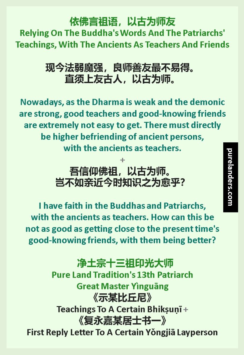 Relying On The Buddha’s Words And The Patriarchs’ Teachings, With The Ancients As Teachers And Friends